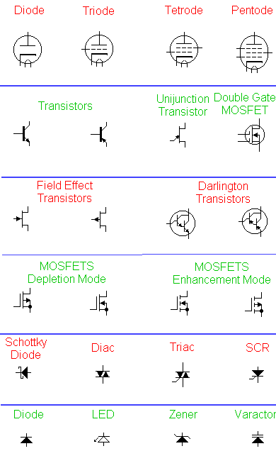 Although there are some differences between them, the . Are used in circuit diagrams (schematics) to represent electronic components. Electrical components and their symbols · wires and traces · grounds · sources · resistors · capacitors · inductors · transformers · diodes . Electronic component symbols are used to denote the components in circuit diagrams. There are hundreds of different types of electronic components, and each has its own unique schematic diagram symbol. There various different systems used for schematic symbols around the globe. There are standard symbols for each of the components . Fortunately, you need to know only a . Electronic components and their symbols. Since voltage, current and resistance are related through . Resistors have a set value. For example, the connecting leads of a . Capacitors come in all shapes and sizes, but they usually have the same primary components.